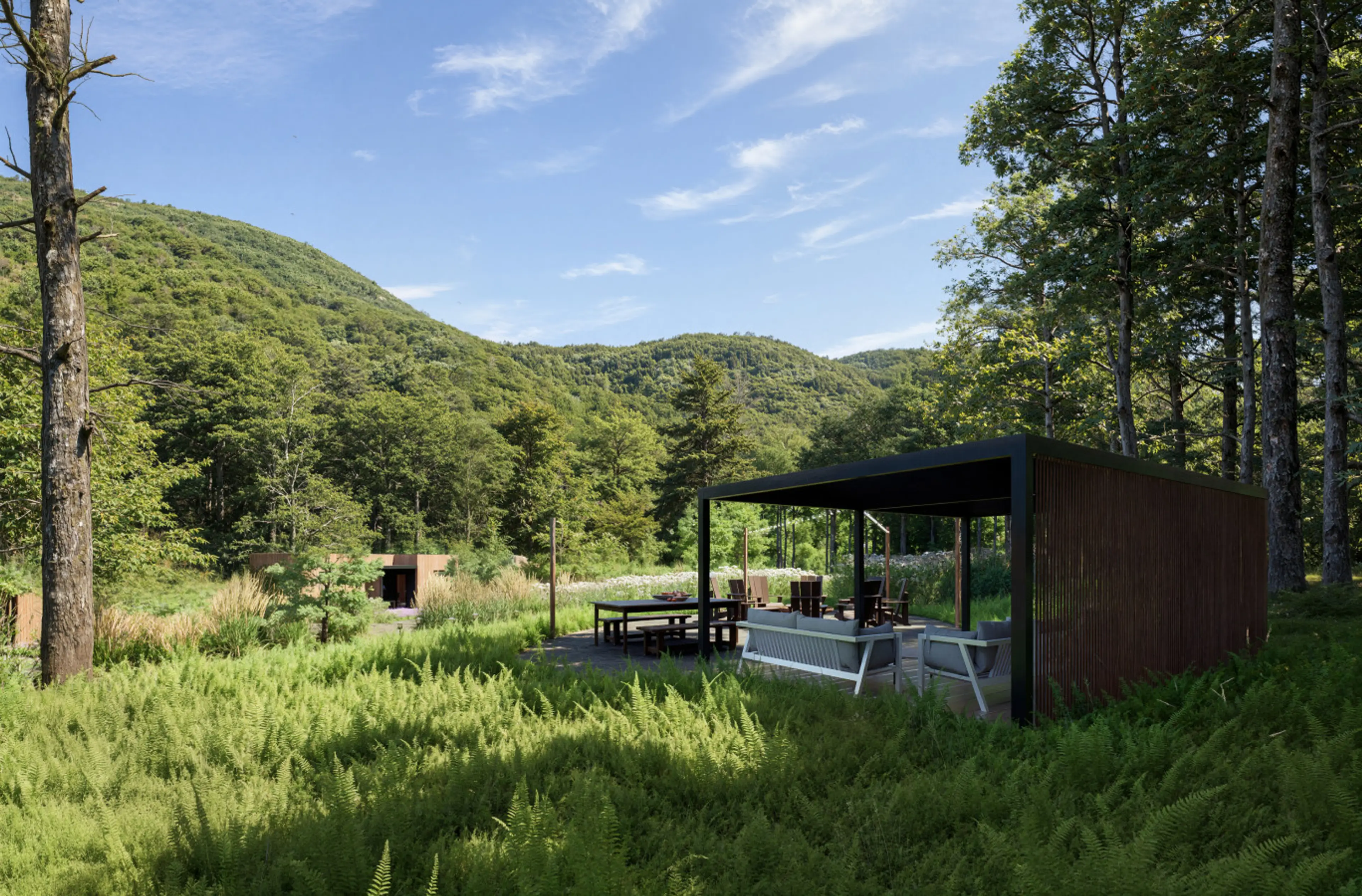 Elka offers a private Catskills retreat designed for restoration and connection. Located near Hunter Mountain and Tannersville, this Scandinavian-inspired cabin sits where forest, creek, and mountain terrain converge. Floor-to-ceiling windows dissolve the boundary between interior and landscape, fi...
